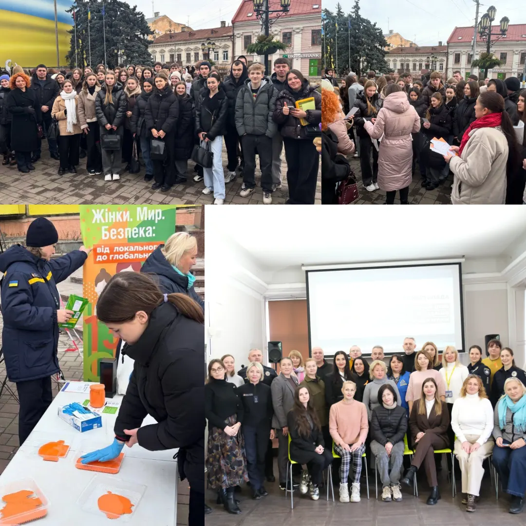 Після брифінгу відбулася публічна інформаційно-просвітницька акція «Зупинимо насильство разом». У заході взяли активну участь студенти ОП «Право» та ОП «Міжнародне право», магістри ОП «Право», викладачі юридичного факультету: к.ю.н., доцент, доцент кафедри Міжнародного права та порівняльного правознавства Іван Торончук, асистентки кафедри публічного права Наталя Волкова, Лідія Нестеренко, кафедри теорії права та прав людини к.ю.н., доц. Тетяна Грекул-Ковалик, к.ю.н. Ольга Миронюк.