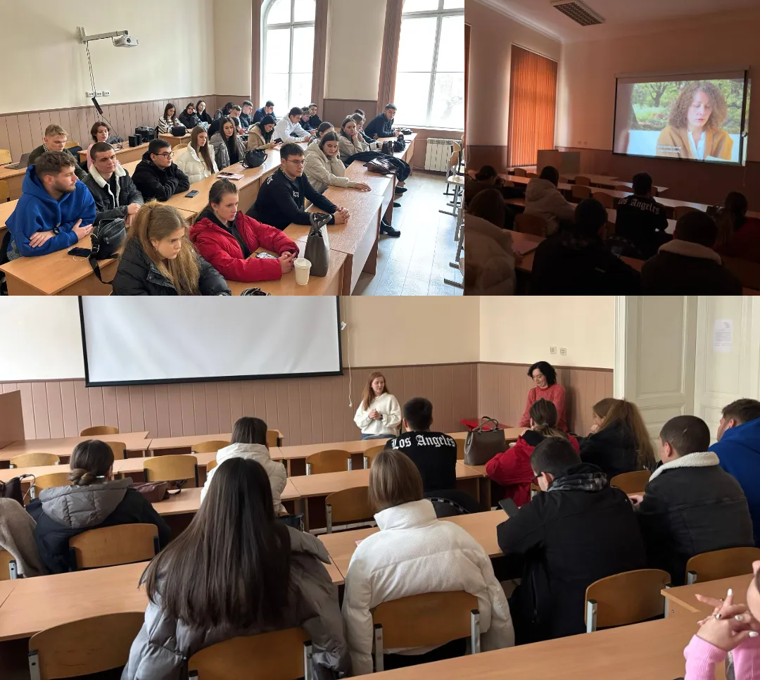 Модераторкою зустрічі виступила Наталія Миколаївна Філяк – регіональна координаторка 22-го фестивалю Docudays UA. До організації та обговорення долучилися асистентки кафедри публічного права – адвокатка, медіаторка Наталя Волкова, координаторка медіаційної служби університету Лідія Нестеренко, медіаторка Ангеліна Паламарчук.