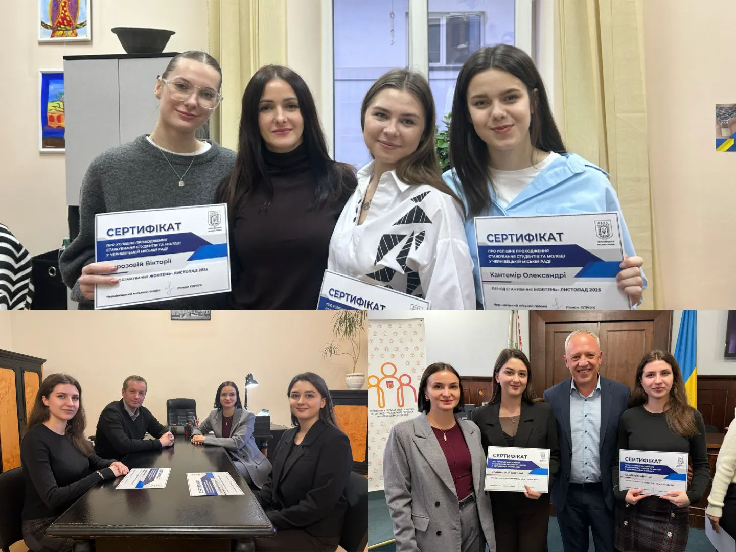 У жовтні–листопаді 2025 року здобувачі третього та четвертого курсів юридичного факультету успішно пройшли двомісячне стажування при Чернівецькій міській раді. Протягом цього часу студентки працювали у Службі у справах дітей та Управлінні освіти, долучаючись до щоденної роботи структур, які формують соціальну та освітню політику міста. Можливість спостерігати за процесами зсередини, брати участь у підготовці документів, засіданнях та організаційній діяльності стала для них справжнім професійним викликом і безцінним досвідом.