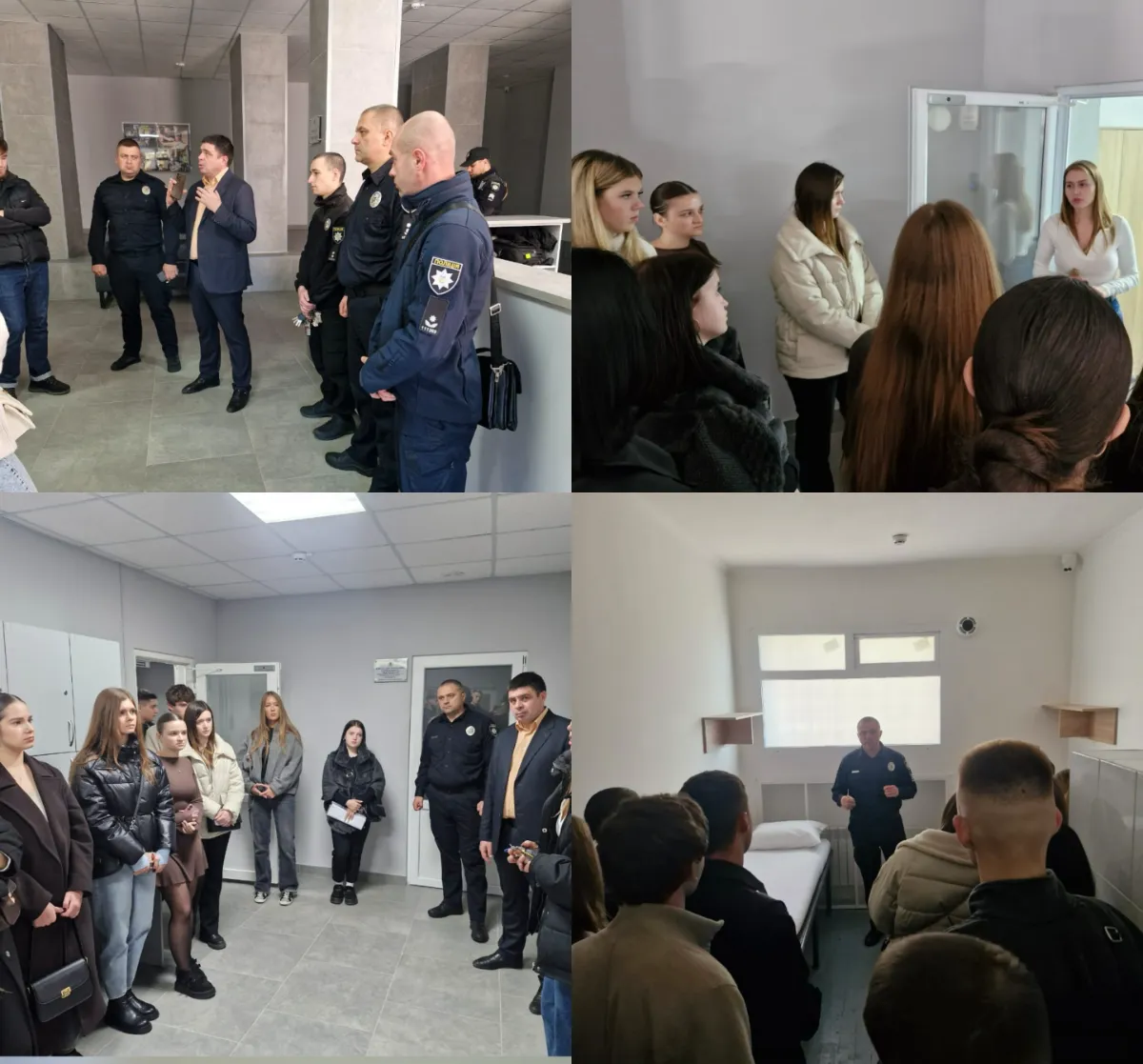 Під час візиту студенти детально ознайомилися з організацією роботи районного управління поліції, особливостями функціонування системи «Custody Records» (запровадженої у підрозділі 25 вересня 2025 року за сприяння Ради Європи) та змінами, які вона внесла у повсякденну діяльність правоохоронців. Було наголошено, що ця система не лише забезпечує дотримання прав людини, а й створює безпечні та комфортні умови для самих працівників поліції.