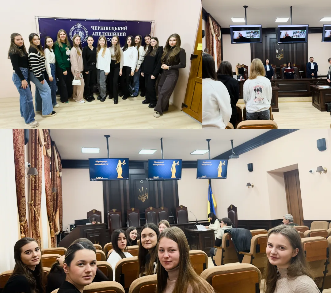 Захід організовано в межах вивчення ключової дисципліни “Цивільне право” та засвоєння фундаментальних тем матеріального права: “Захист цивільних прав”, “Захист права власності” та “Цивільно-правова відповідальність”. Студенти 205 групи мали унікальну можливість здійснити освітній візит до зали судового засідання Чернівецького апеляційного суду.