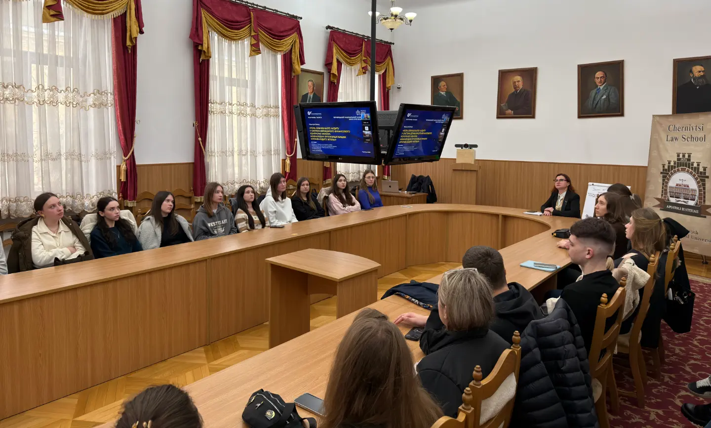 Коли право зустрічається з реальною практикою, аудиторія перетворюється на інтелектуальний майданчик. Так, 31 березня 2026 року юридичний факультет Чернівецького національного університету імені Юрія Федьковича став епіцентром обговорення майбутнього публічних фінансів України. Студенти 3-го курсу в межах дисципліни «Фінансове право» змінили звичний формат лекцій на захопливий інтенсив від топ-практика. До зали вченої ради завітала (дистанційно, але з ефектом повної присутності) Олена Володимирівна Ларіон, Начальник Управління контролю у сфері інфраструктури Рахункової палати України й визнаний фахівець з фінансового права та державного фінансового контролю, яка знає про шлях кожної бюджетної гривні все.