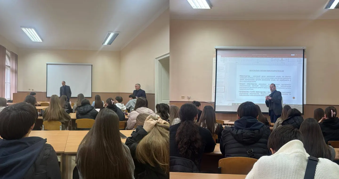 7.04.2026 року Павлом Крайнім, к.ю.н., доцентом, доцентом кафедри публічного права юридичного факультету ЧНУ імені Юрія Федьковича проведено лекційне заняття в рамках профорієнтаційного циклу тренінгів «Фінансово-правова грамотність» на тему «Система органів публічної влади у фінансовій та податковій сферах». Захід відвідали понад 50 учасників, які представляють школи м. Чернівців та області.