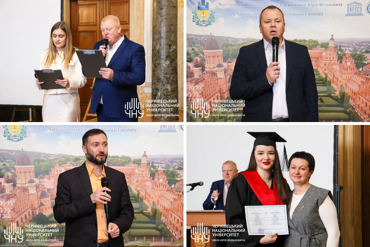 Під час Урочистої Академії вручення дипломів з вітальними словами до випускників звернулись ректор Чернівецького національного університету імені Юрія Федьковича професор Руслан Білоскурський, декан юридичного факультету професор Віталій Вдовічен, які щиро побажали їм щасливої долі, професійних здобутків, підкресливши неабияку важливість та відповідальність професії правника на сучасному етапі. Від імені випускників до присутніх звернувся Максим Тирша, подякувавши всьому науково-викладацькому складу факультету за набуті знання, за можливість розкрити свій потенціал. Чудовим та емоційним було також звучання неповторної української пісні у виконанні талановитої студентки 3 курсу юридичного факультету, лаборанта кафедри процесуального права, ведучої заходу, Олександри Данилюк.