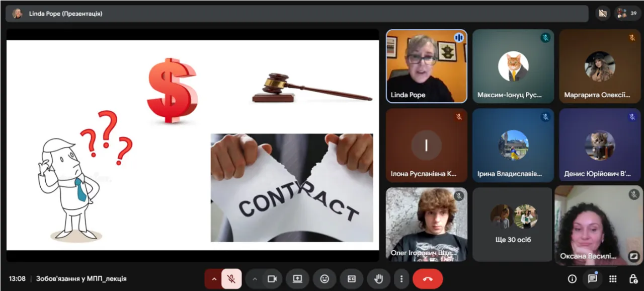 Лекція гармонійно поєднала фундаментальні теоретичні положення з численними прикладами з реальної юридичної практики США, наочно демонструючи студентам, яким чином навіть незначні мовні нюанси, стилістичні особливості або вибір конкретних термінів у тексті контракту можуть істотно впливати на правові наслідки, тлумачення договірних зобов’язань та потенційні ризики для сторін у міжнародних правовідносинах, що робить процес навчання водночас практично орієнтованим і надзвичайно цінним для майбутніх юристів у сфері міжнародного права.